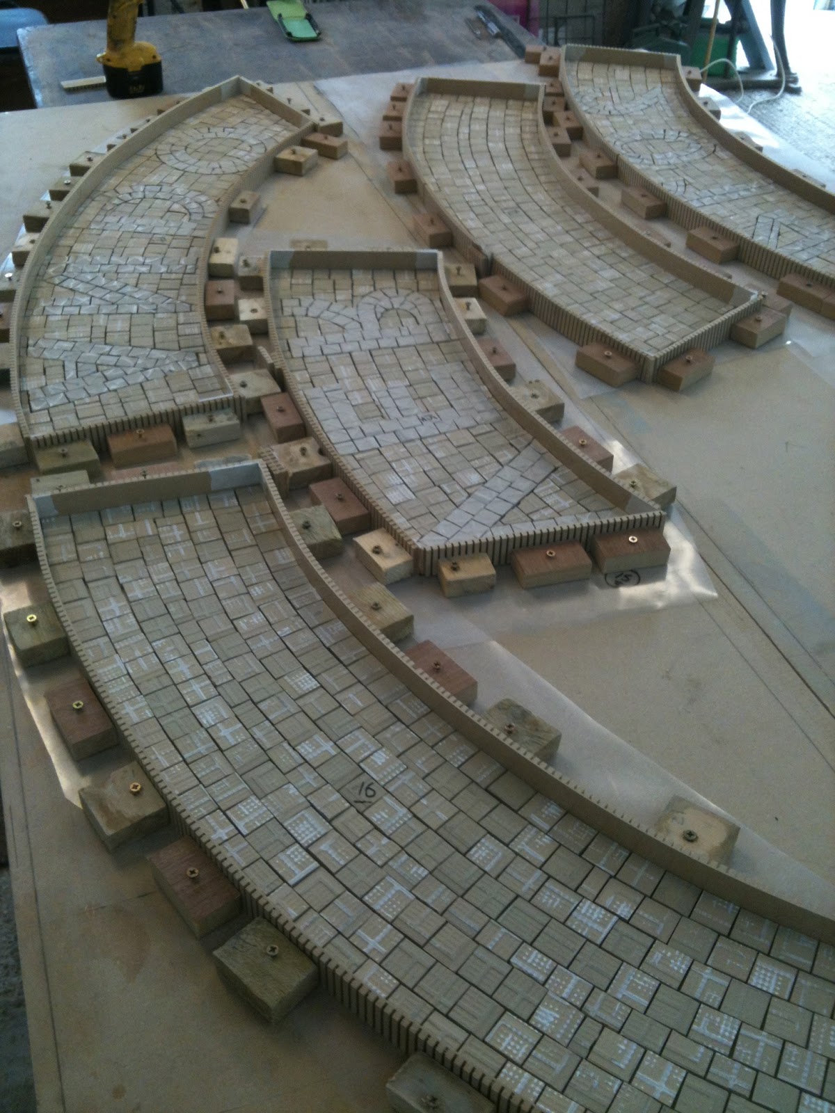 And the rather architectural moulds below are 5 of a total of 17 mosaic castings that will form the emblem of the Andover Rotary Club for a performance space in Vigo Park, Andover.